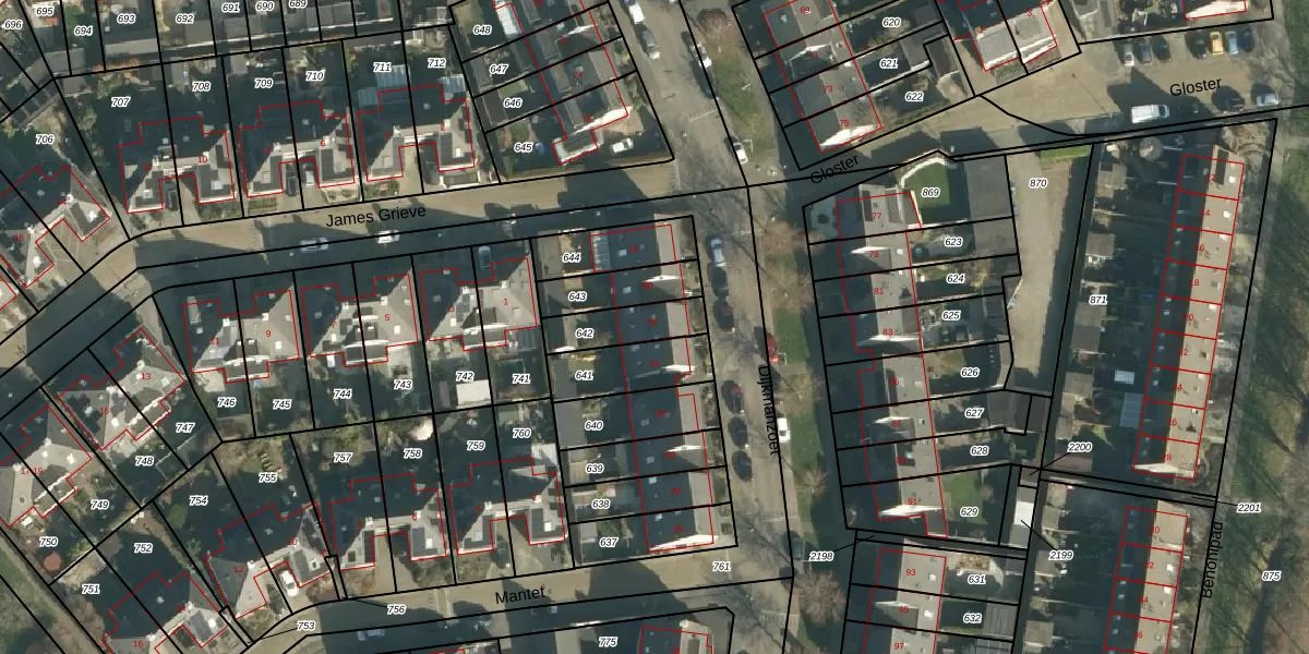 Gebruik de zoekbalk of klik op een perceel voor informatie over de adressen binnen dit perceel.