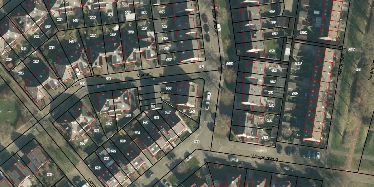 Dijkmanzoet 94 is gelegen op kadastraal perceel TIE00K775. Deze kadastrale aanduiding is uniek en wordt gebruikt door het Kadaster om eigendomsrechten en andere zakelijke rechten vast te leggen. Het perceel maakt onderdeel uit van de kadastrale gemeente Tiel.