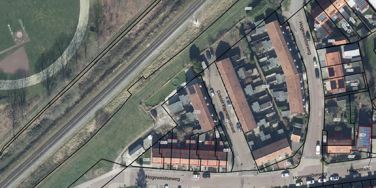 Het perceel waarop Dokter Pameijerstraat 2 staat heeft een oppervlakte van 982 m². Dit is een groot perceel. De perceeloppervlakte wordt geregistreerd door het Kadaster. Gedetailleerde informatie over de maten van dit perceel kunt u vinden in het rapport Kadastrale kaart met maatvoering van Dokter Pameijerstraat 2.