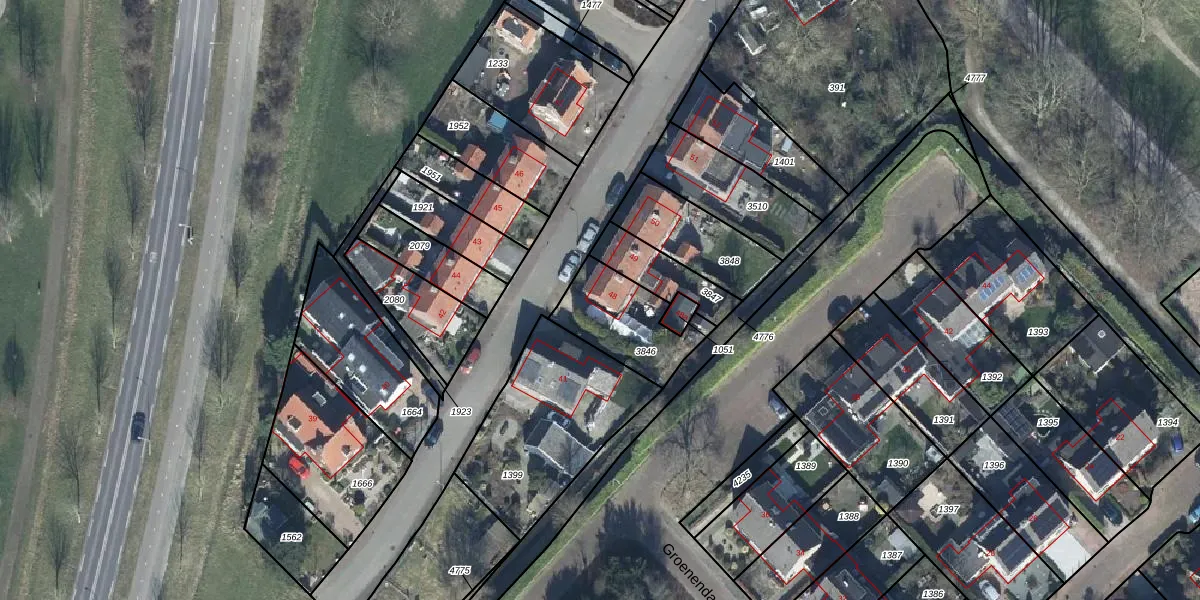 Gebruik de zoekbalk of klik op een perceel voor informatie over de adressen binnen dit perceel.