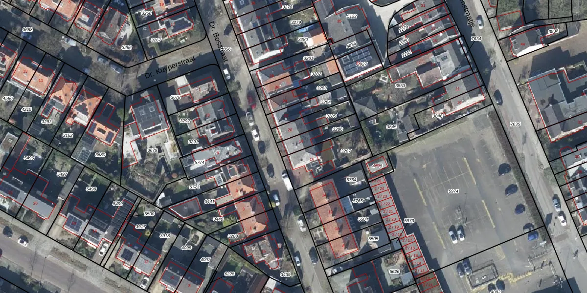 Dr. Bosstraat 18 is gelegen op kadastraal perceel TIE00D3286. Deze kadastrale aanduiding is uniek en wordt gebruikt door het Kadaster om eigendomsrechten en andere zakelijke rechten vast te leggen. Het perceel maakt onderdeel uit van de kadastrale gemeente Tiel.