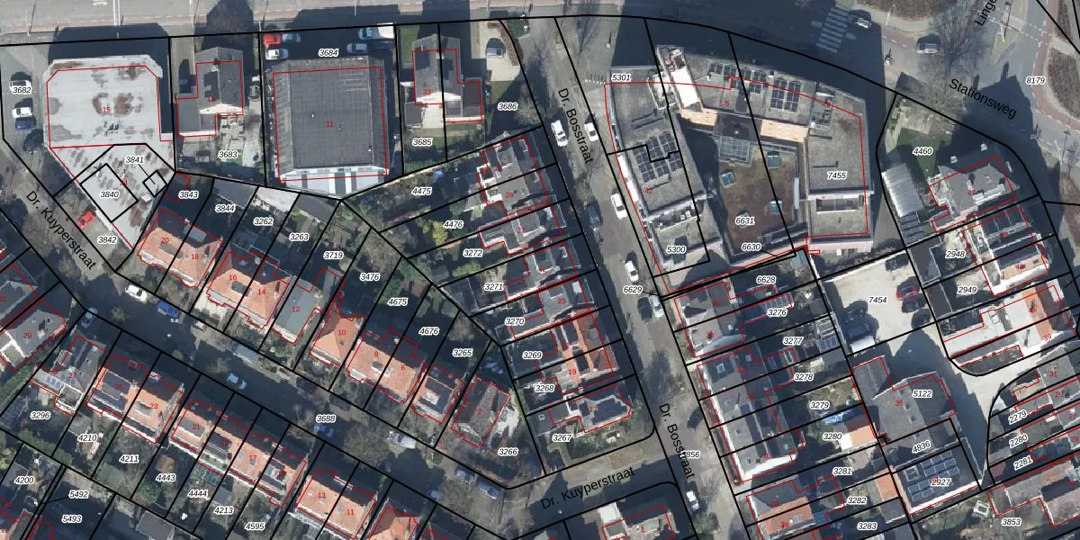 Gebruik de zoekbalk of klik op een perceel voor informatie over de adressen binnen dit perceel.