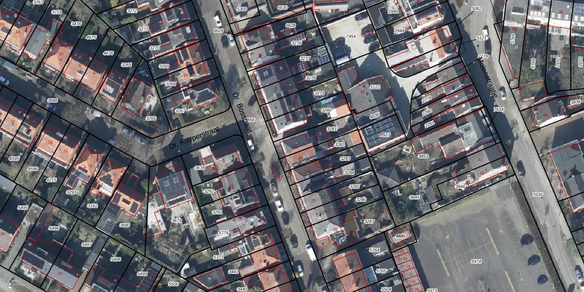 Dr. Bosstraat 28 is gelegen op kadastraal perceel TIE00D3281. Deze kadastrale aanduiding is uniek en wordt gebruikt door het Kadaster om eigendomsrechten en andere zakelijke rechten vast te leggen. Het perceel maakt onderdeel uit van de kadastrale gemeente Tiel.