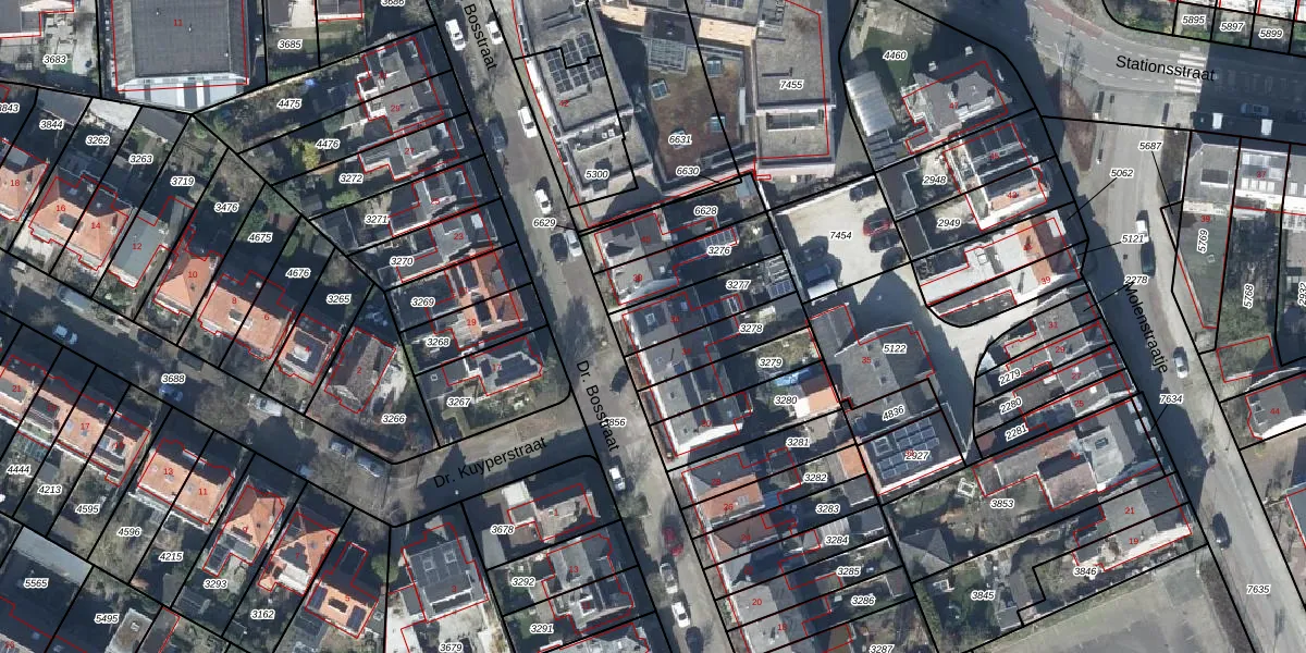 Dr. Bosstraat 36 is gelegen op kadastraal perceel TIE00D3277. Deze kadastrale aanduiding is uniek en wordt gebruikt door het Kadaster om eigendomsrechten en andere zakelijke rechten vast te leggen. Het perceel maakt onderdeel uit van de kadastrale gemeente Tiel.
