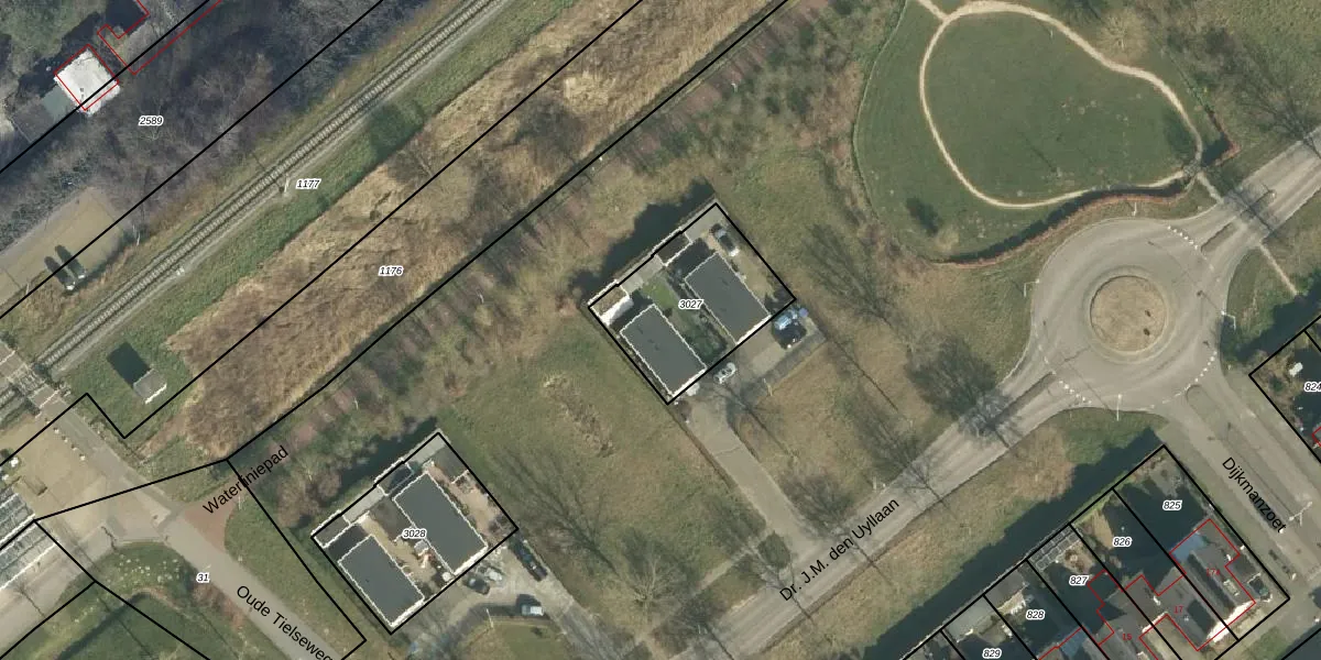 Dr. J.M. den Uyllaan 16 is gelegen op kadastraal perceel TIE00K3027. Deze kadastrale aanduiding is uniek en wordt gebruikt door het Kadaster om eigendomsrechten en andere zakelijke rechten vast te leggen. Het perceel maakt onderdeel uit van de kadastrale gemeente Tiel.