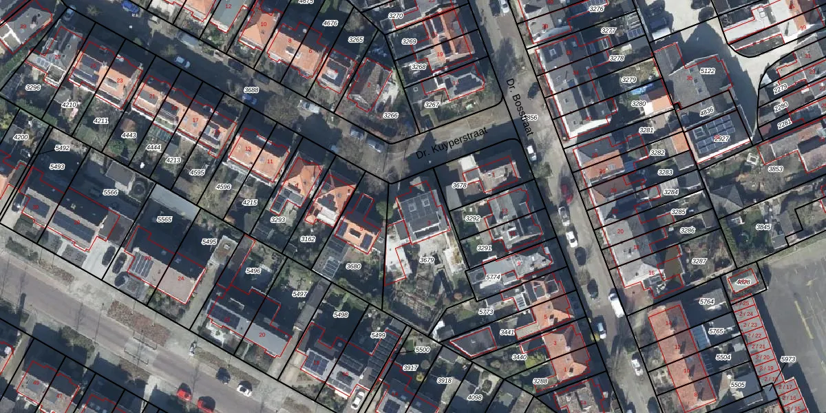 Het perceel waarop Dr. Kuyperstraat 3 staat heeft een oppervlakte van 608 m². Dit is een groot perceel. De perceeloppervlakte wordt geregistreerd door het Kadaster. Gedetailleerde informatie over de maten van dit perceel kunt u vinden in het rapport Kadastrale kaart met maatvoering van Dr. Kuyperstraat 3.