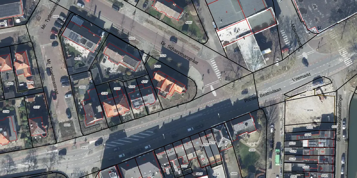 Dr. Schaepmanstraat 1 is gelegen op kadastraal perceel TIE00D7529. Deze kadastrale aanduiding is uniek en wordt gebruikt door het Kadaster om eigendomsrechten en andere zakelijke rechten vast te leggen. Het perceel maakt onderdeel uit van de kadastrale gemeente Tiel.