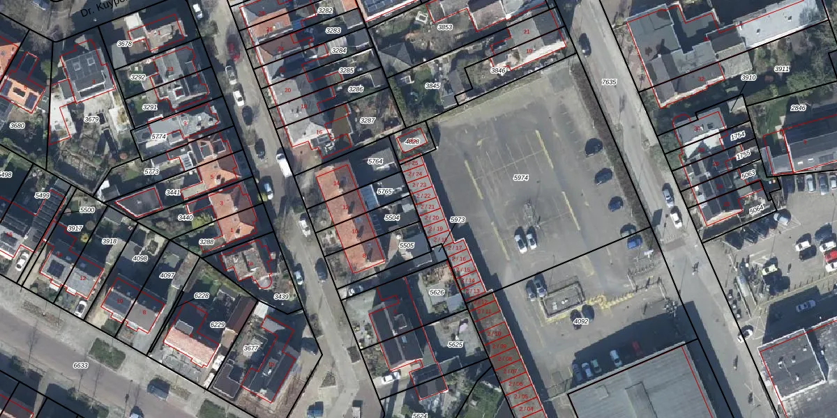 Dr. Schaepmanstraat 2-21 is gelegen op kadastraal perceel TIE00D5974. Deze kadastrale aanduiding is uniek en wordt gebruikt door het Kadaster om eigendomsrechten en andere zakelijke rechten vast te leggen. Het perceel maakt onderdeel uit van de kadastrale gemeente Tiel.