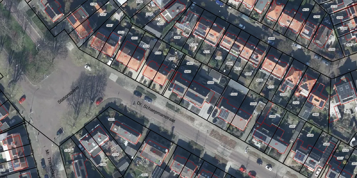 Gebruik de zoekbalk of klik op een perceel voor informatie over de adressen binnen dit perceel.