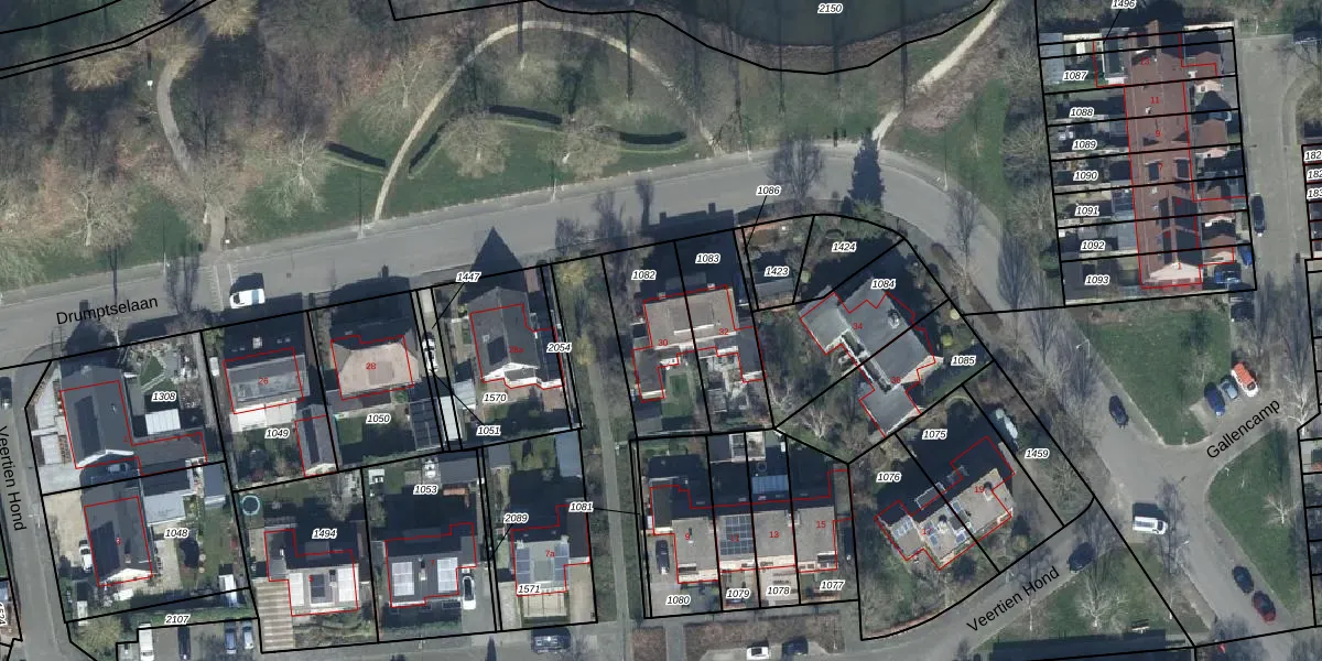 Drumptselaan 30 is gelegen op kadastraal perceel TIE00G1082. Deze kadastrale aanduiding is uniek en wordt gebruikt door het Kadaster om eigendomsrechten en andere zakelijke rechten vast te leggen. Het perceel maakt onderdeel uit van de kadastrale gemeente Tiel.
