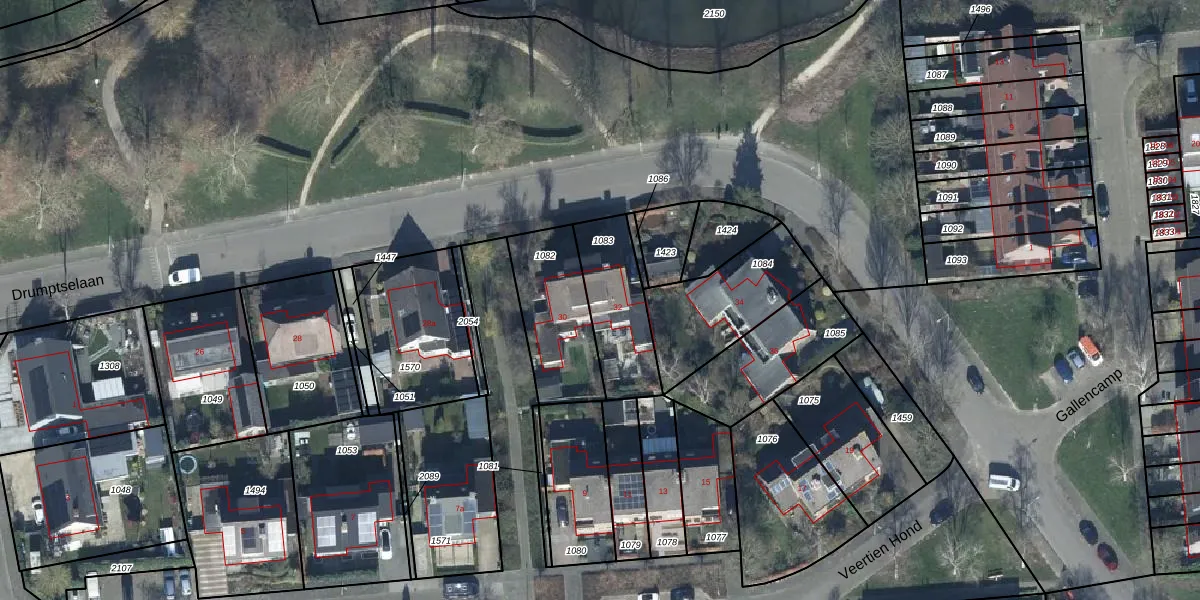 Drumptselaan 32 is gelegen op kadastraal perceel TIE00G1083. Deze kadastrale aanduiding is uniek en wordt gebruikt door het Kadaster om eigendomsrechten en andere zakelijke rechten vast te leggen. Het perceel maakt onderdeel uit van de kadastrale gemeente Tiel.