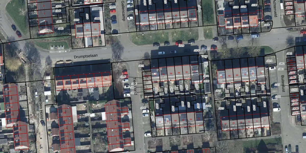Drumptselaan 52 is gelegen op kadastraal perceel TIE00G1603. Deze kadastrale aanduiding is uniek en wordt gebruikt door het Kadaster om eigendomsrechten en andere zakelijke rechten vast te leggen. Het perceel maakt onderdeel uit van de kadastrale gemeente Tiel.