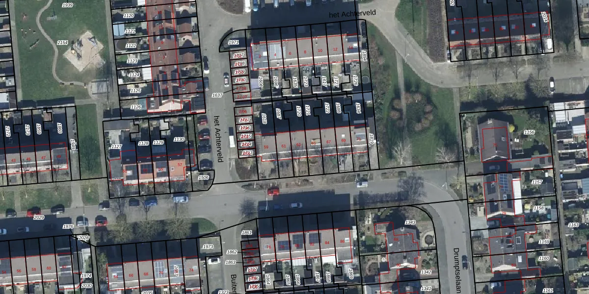 Het perceel waarop Drumptselaan 63 staat heeft een oppervlakte van 135 m². Dit is een middelgroot perceel. De perceeloppervlakte wordt geregistreerd door het Kadaster. Gedetailleerde informatie over de maten van dit perceel kunt u vinden in het rapport Kadastrale kaart met maatvoering van Drumptselaan 63.
