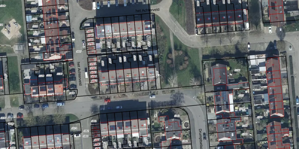 Drumptselaan 71 is gelegen op kadastraal perceel TIE00G1634. Deze kadastrale aanduiding is uniek en wordt gebruikt door het Kadaster om eigendomsrechten en andere zakelijke rechten vast te leggen. Het perceel maakt onderdeel uit van de kadastrale gemeente Tiel.