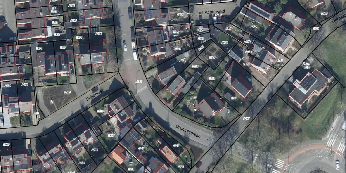 Het perceel waarop Drumptselaan 99 staat heeft een oppervlakte van 355 m². Dit is een groot perceel. De perceeloppervlakte wordt geregistreerd door het Kadaster. Gedetailleerde informatie over de maten van dit perceel kunt u vinden in het rapport Kadastrale kaart met maatvoering van Drumptselaan 99.
