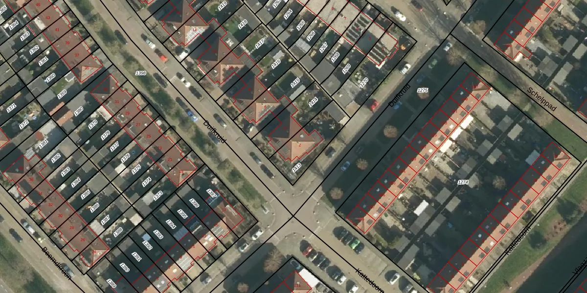 Het perceel waarop Duifkruid 2 staat heeft een oppervlakte van 314 m². Dit is een groot perceel. De perceeloppervlakte wordt geregistreerd door het Kadaster. Gedetailleerde informatie over de maten van dit perceel kunt u vinden in het rapport Kadastrale kaart met maatvoering van Duifkruid 2.
