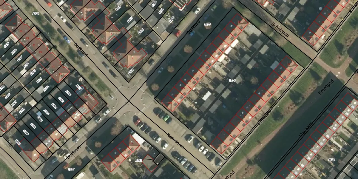 Het perceel waarop Duifkruid 205 staat heeft een oppervlakte van 3545 m². Dit is een zeer groot perceel. De perceeloppervlakte wordt geregistreerd door het Kadaster. Gedetailleerde informatie over de maten van dit perceel kunt u vinden in het rapport Kadastrale kaart met maatvoering van Duifkruid 205.