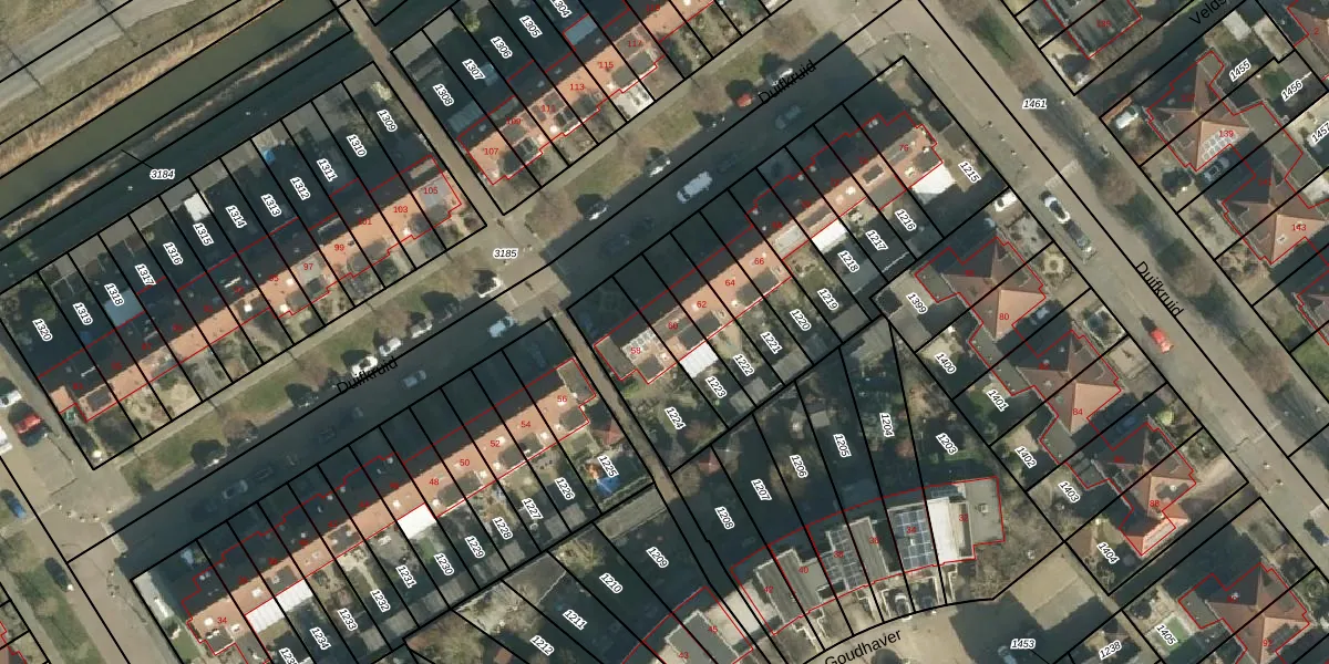 Het perceel waarop Duifkruid 60 staat heeft een oppervlakte van 157 m². Dit is een middelgroot perceel. De perceeloppervlakte wordt geregistreerd door het Kadaster. Gedetailleerde informatie over de maten van dit perceel kunt u vinden in het rapport Kadastrale kaart met maatvoering van Duifkruid 60.