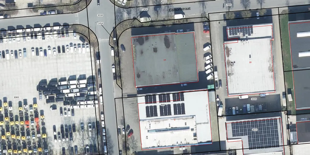 Het perceel waarop Edisonstraat 14 staat heeft een oppervlakte van 2630 m². Dit is een zeer groot perceel. De perceeloppervlakte wordt geregistreerd door het Kadaster. Gedetailleerde informatie over de maten van dit perceel kunt u vinden in het rapport Kadastrale kaart met maatvoering van Edisonstraat 14.