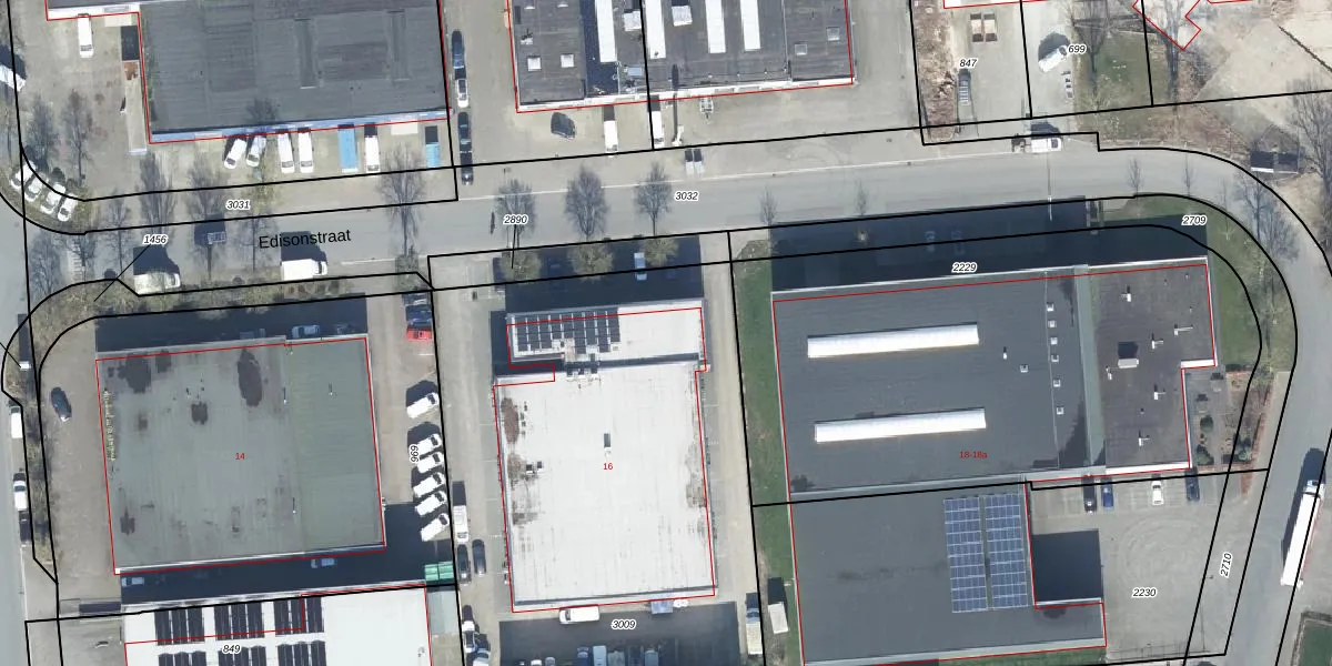 Het perceel waarop Edisonstraat 16-06 staat heeft een oppervlakte van 2788 m². Dit is een zeer groot perceel. De perceeloppervlakte wordt geregistreerd door het Kadaster. Gedetailleerde informatie over de maten van dit perceel kunt u vinden in het rapport Kadastrale kaart met maatvoering van Edisonstraat 16-06.