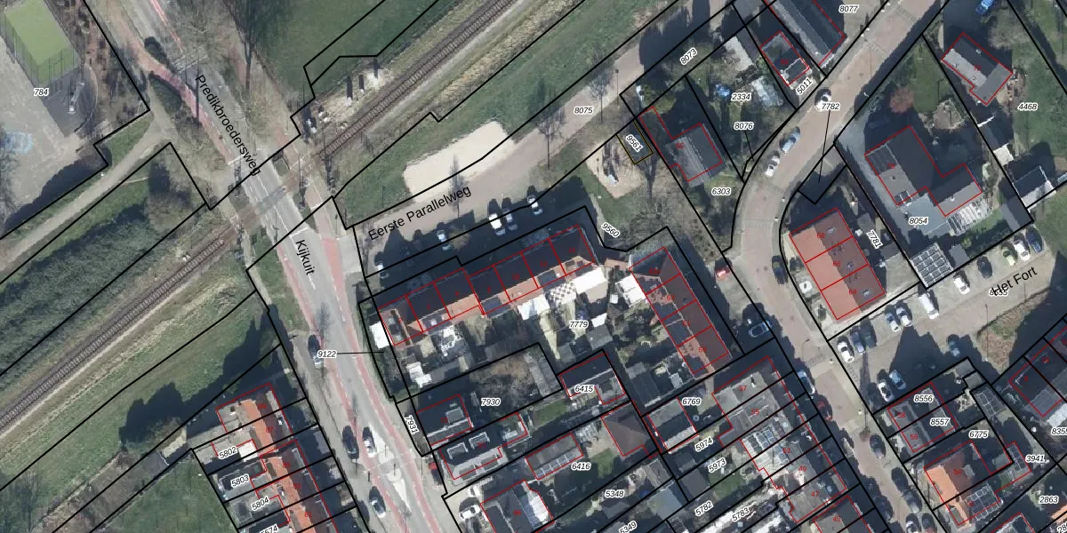 Het perceel waarop Eerste Parallelweg 12 staat heeft een oppervlakte van 1480 m². Dit is een zeer groot perceel. De perceeloppervlakte wordt geregistreerd door het Kadaster. Gedetailleerde informatie over de maten van dit perceel kunt u vinden in het rapport Kadastrale kaart met maatvoering van Eerste Parallelweg 12.