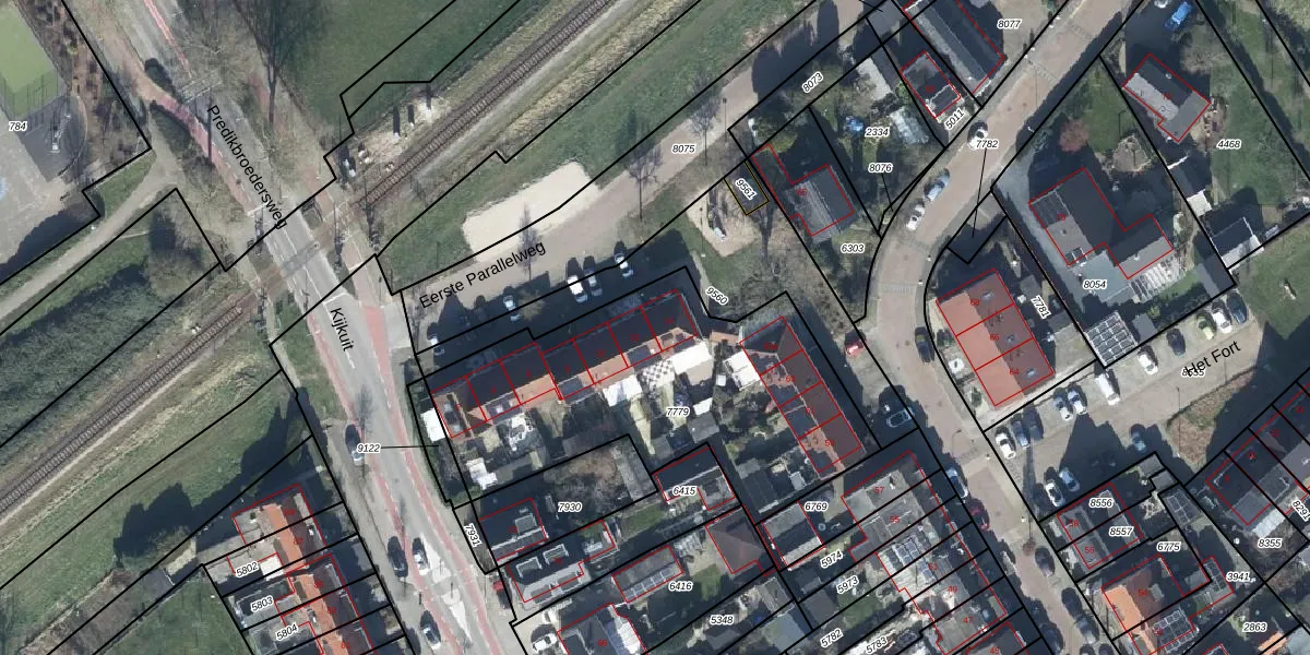 Eerste Parallelweg 14 is gelegen op kadastraal perceel TIE00C7779. Deze kadastrale aanduiding is uniek en wordt gebruikt door het Kadaster om eigendomsrechten en andere zakelijke rechten vast te leggen. Het perceel maakt onderdeel uit van de kadastrale gemeente Tiel.
