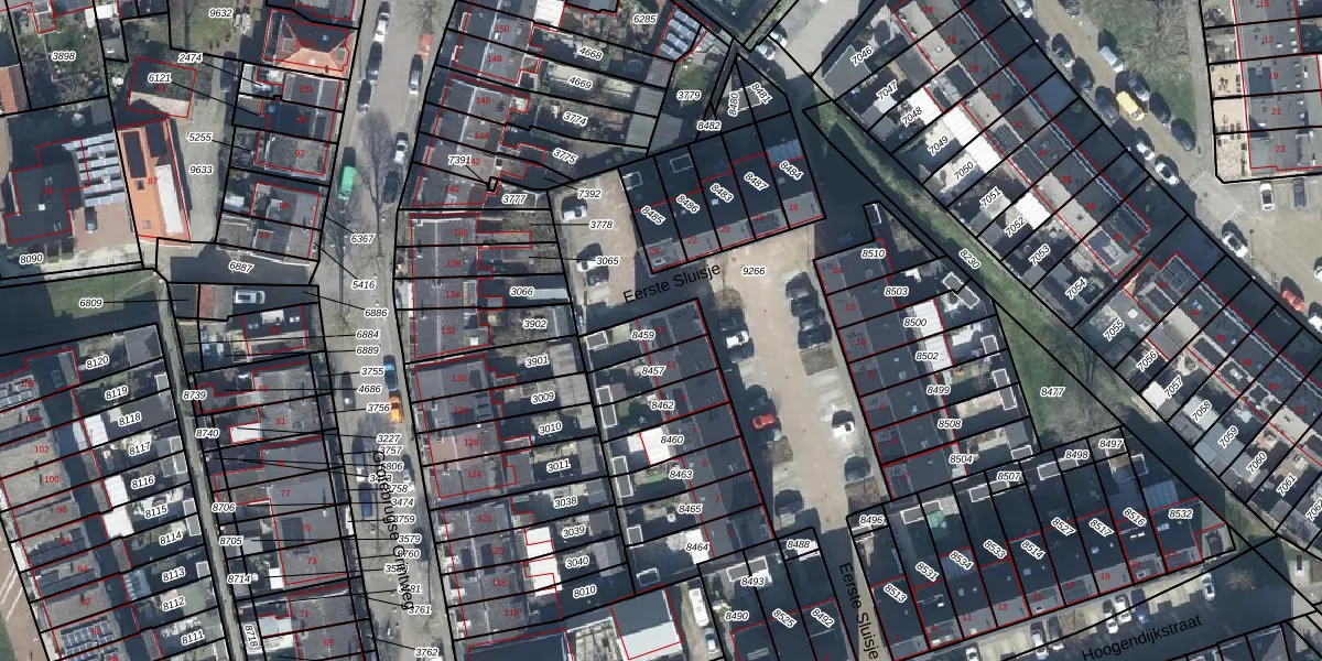Het perceel waarop Eerste Sluisje 13 staat heeft een oppervlakte van 107 m². Dit is een middelgroot perceel. De perceeloppervlakte wordt geregistreerd door het Kadaster. Gedetailleerde informatie over de maten van dit perceel kunt u vinden in het rapport Kadastrale kaart met maatvoering van Eerste Sluisje 13.