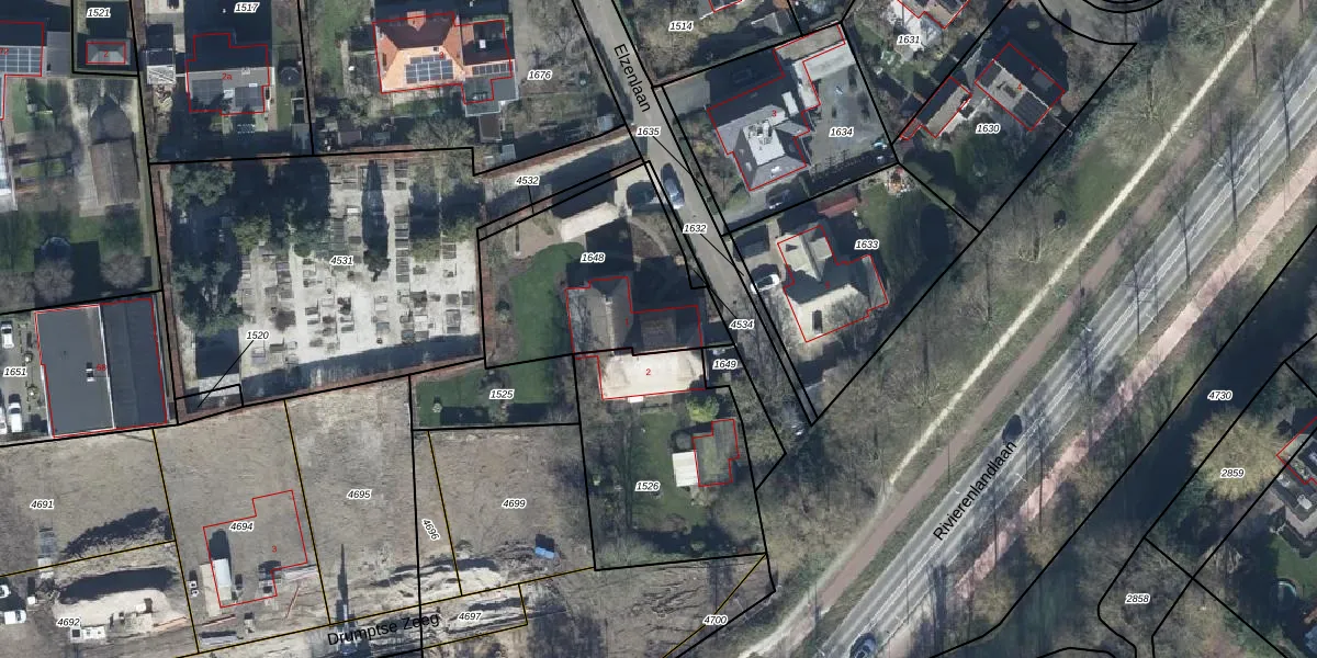 Het perceel waarop Elzenlaan 1 staat heeft een oppervlakte van 756 m². Dit is een groot perceel. De perceeloppervlakte wordt geregistreerd door het Kadaster. Gedetailleerde informatie over de maten van dit perceel kunt u vinden in het rapport Kadastrale kaart met maatvoering van Elzenlaan 1.