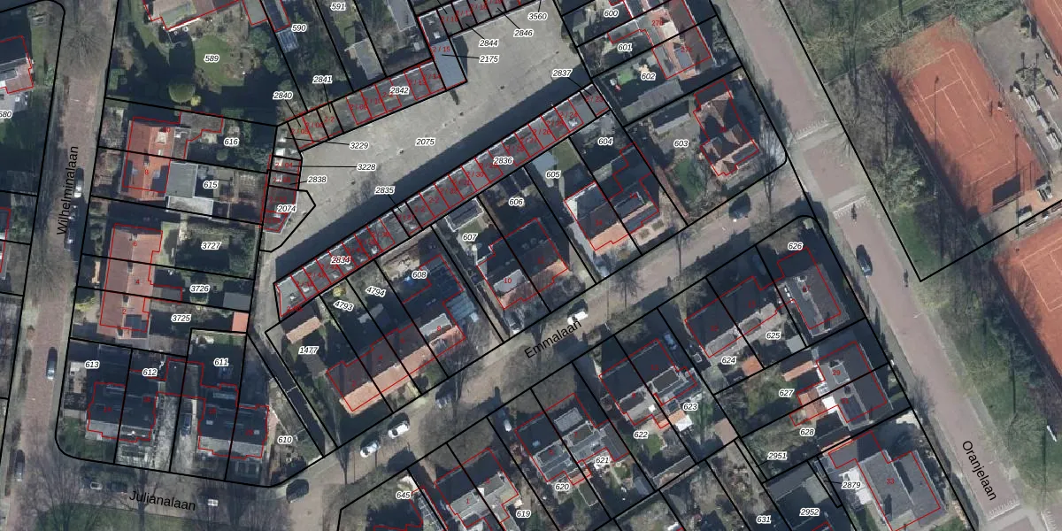 Emmalaan 12 is gelegen op kadastraal perceel TIE00H606. Deze kadastrale aanduiding is uniek en wordt gebruikt door het Kadaster om eigendomsrechten en andere zakelijke rechten vast te leggen. Het perceel maakt onderdeel uit van de kadastrale gemeente Tiel.
