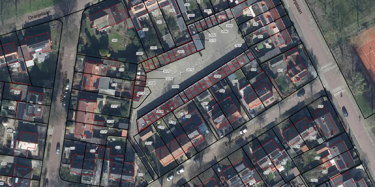 Emmalaan 2-35 is gelegen op kadastraal perceel TIE00H2836. Deze kadastrale aanduiding is uniek en wordt gebruikt door het Kadaster om eigendomsrechten en andere zakelijke rechten vast te leggen. Het perceel maakt onderdeel uit van de kadastrale gemeente Tiel.