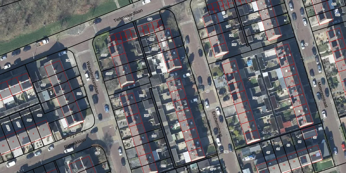Erichemstraat 10 is gelegen op kadastraal perceel TIE00M1010. Deze kadastrale aanduiding is uniek en wordt gebruikt door het Kadaster om eigendomsrechten en andere zakelijke rechten vast te leggen. Het perceel maakt onderdeel uit van de kadastrale gemeente Tiel.
