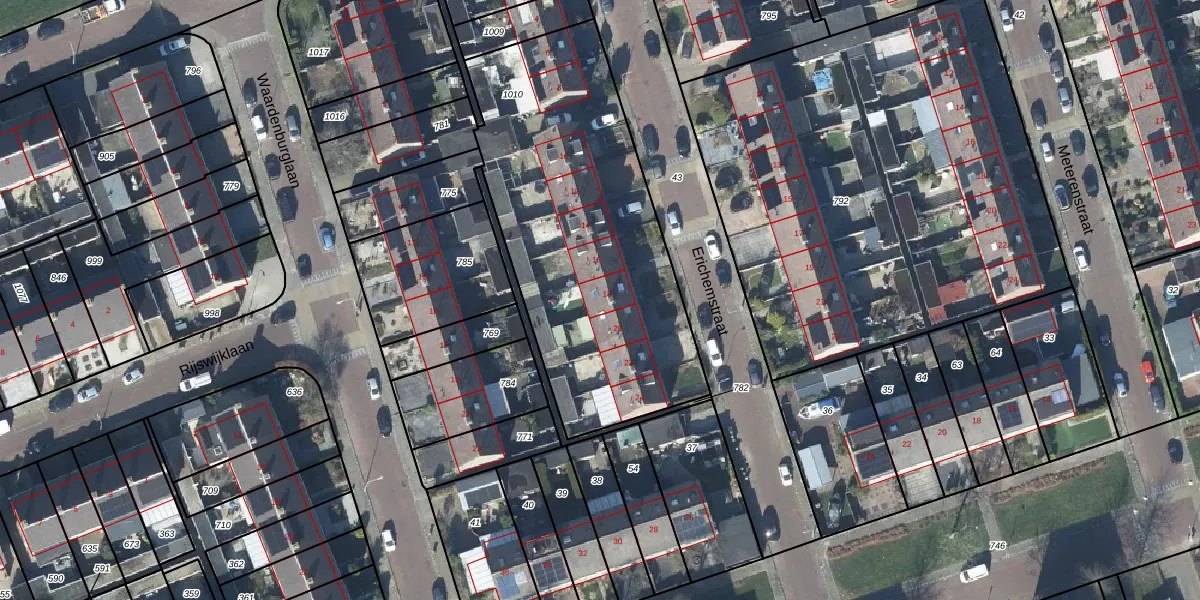 Het perceel waarop Erichemstraat 18 staat heeft een oppervlakte van 1617 m². Dit is een zeer groot perceel. De perceeloppervlakte wordt geregistreerd door het Kadaster. Gedetailleerde informatie over de maten van dit perceel kunt u vinden in het rapport Kadastrale kaart met maatvoering van Erichemstraat 18.
