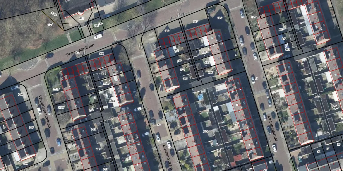 Erichemstraat 7 is gelegen op kadastraal perceel TIE00M795. Deze kadastrale aanduiding is uniek en wordt gebruikt door het Kadaster om eigendomsrechten en andere zakelijke rechten vast te leggen. Het perceel maakt onderdeel uit van de kadastrale gemeente Tiel.