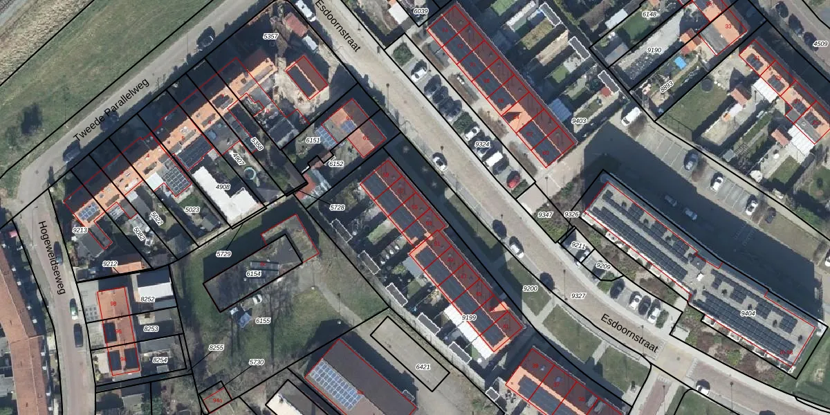 Het perceel waarop Esdoornstraat 55 staat heeft een oppervlakte van 2065 m². Dit is een zeer groot perceel. De perceeloppervlakte wordt geregistreerd door het Kadaster. Gedetailleerde informatie over de maten van dit perceel kunt u vinden in het rapport Kadastrale kaart met maatvoering van Esdoornstraat 55.
