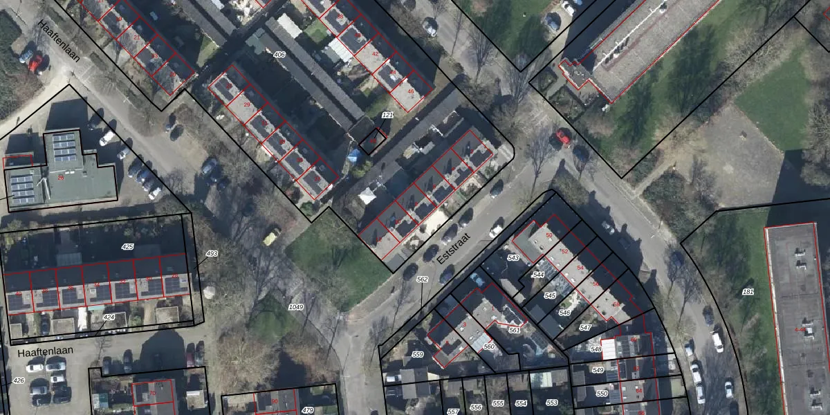 Het perceel waarop Eststraat 8 staat heeft een oppervlakte van 4980 m². Dit is een zeer groot perceel. De perceeloppervlakte wordt geregistreerd door het Kadaster. Gedetailleerde informatie over de maten van dit perceel kunt u vinden in het rapport Kadastrale kaart met maatvoering van Eststraat 8.