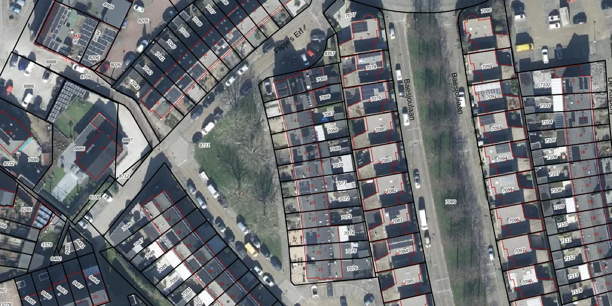 Flipje's Erf 9 is gelegen op kadastraal perceel TIE00C7069. Deze kadastrale aanduiding is uniek en wordt gebruikt door het Kadaster om eigendomsrechten en andere zakelijke rechten vast te leggen. Het perceel maakt onderdeel uit van de kadastrale gemeente Tiel.