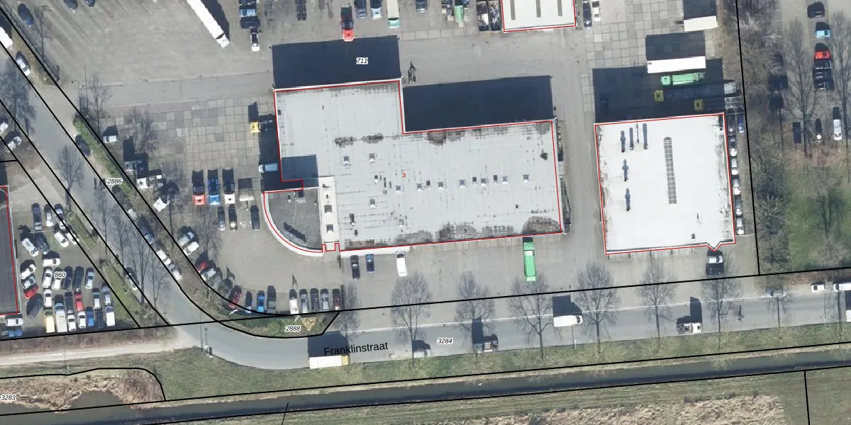 Het perceel waarop Franklinstraat 3 staat heeft een oppervlakte van 1,2 ha. Dit is een zeer groot perceel. De perceeloppervlakte wordt geregistreerd door het Kadaster. Gedetailleerde informatie over de maten van dit perceel kunt u vinden in het rapport Kadastrale kaart met maatvoering van Franklinstraat 3.