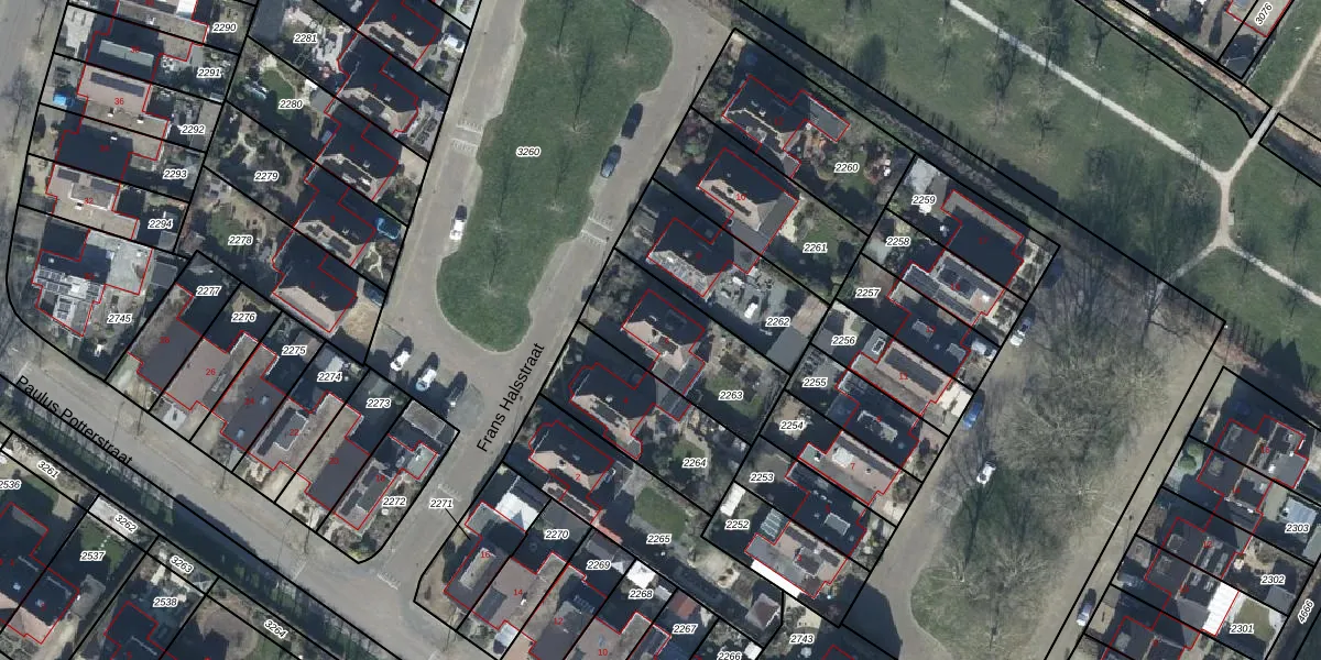 Het perceel waarop Frans Halsstraat 6 staat heeft een oppervlakte van 400 m². Dit is een groot perceel. De perceeloppervlakte wordt geregistreerd door het Kadaster. Gedetailleerde informatie over de maten van dit perceel kunt u vinden in het rapport Kadastrale kaart met maatvoering van Frans Halsstraat 6.