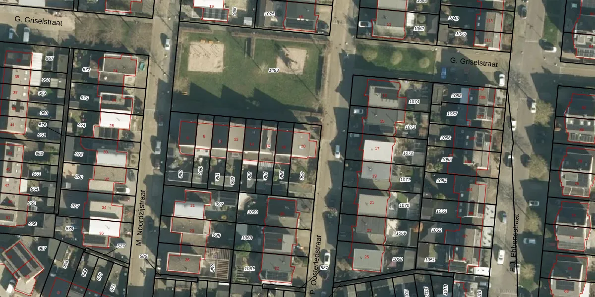 G. Griselstraat 20 is gelegen op kadastraal perceel TIE00K996. Deze kadastrale aanduiding is uniek en wordt gebruikt door het Kadaster om eigendomsrechten en andere zakelijke rechten vast te leggen. Het perceel maakt onderdeel uit van de kadastrale gemeente Tiel.