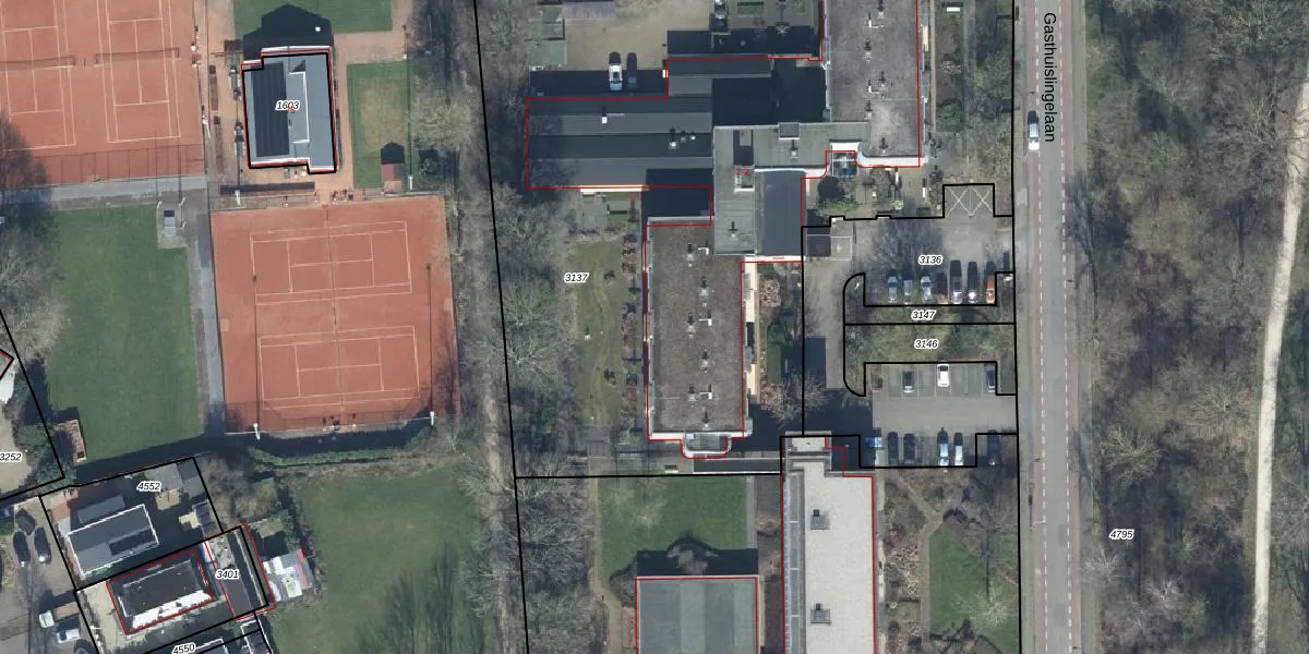 Het perceel waarop Gasthuislingelaan 2-009 staat heeft een oppervlakte van 5111 m². Dit is een zeer groot perceel. De perceeloppervlakte wordt geregistreerd door het Kadaster. Gedetailleerde informatie over de maten van dit perceel kunt u vinden in het rapport Kadastrale kaart met maatvoering van Gasthuislingelaan 2-009.
