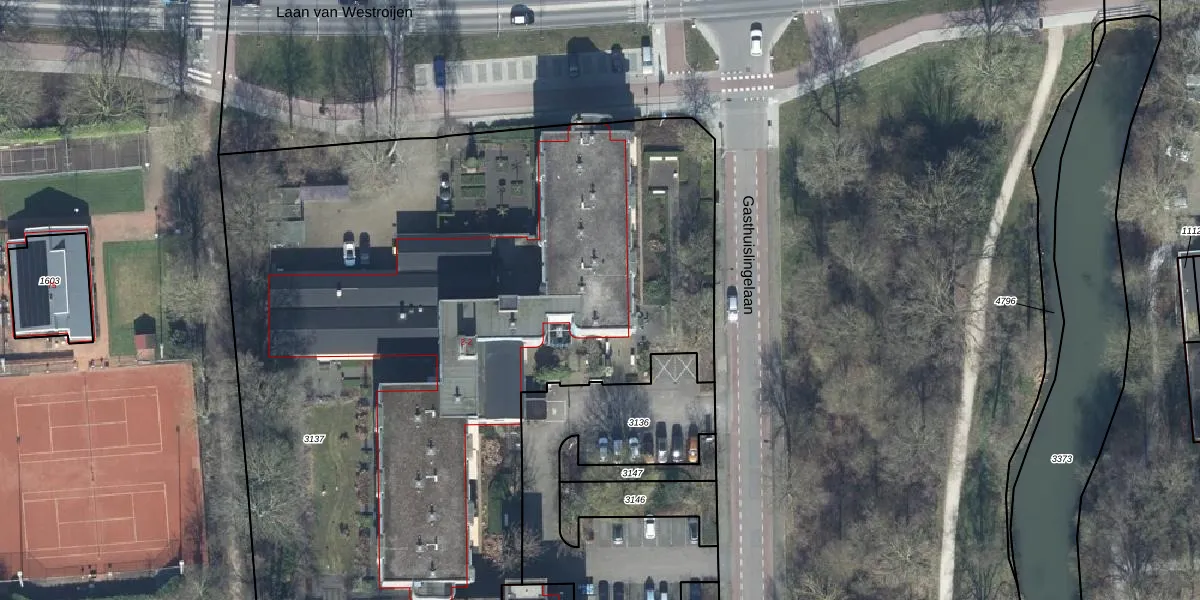 Het perceel waarop Gasthuislingelaan 2-013 staat heeft een oppervlakte van 5111 m². Dit is een zeer groot perceel. De perceeloppervlakte wordt geregistreerd door het Kadaster. Gedetailleerde informatie over de maten van dit perceel kunt u vinden in het rapport Kadastrale kaart met maatvoering van Gasthuislingelaan 2-013.