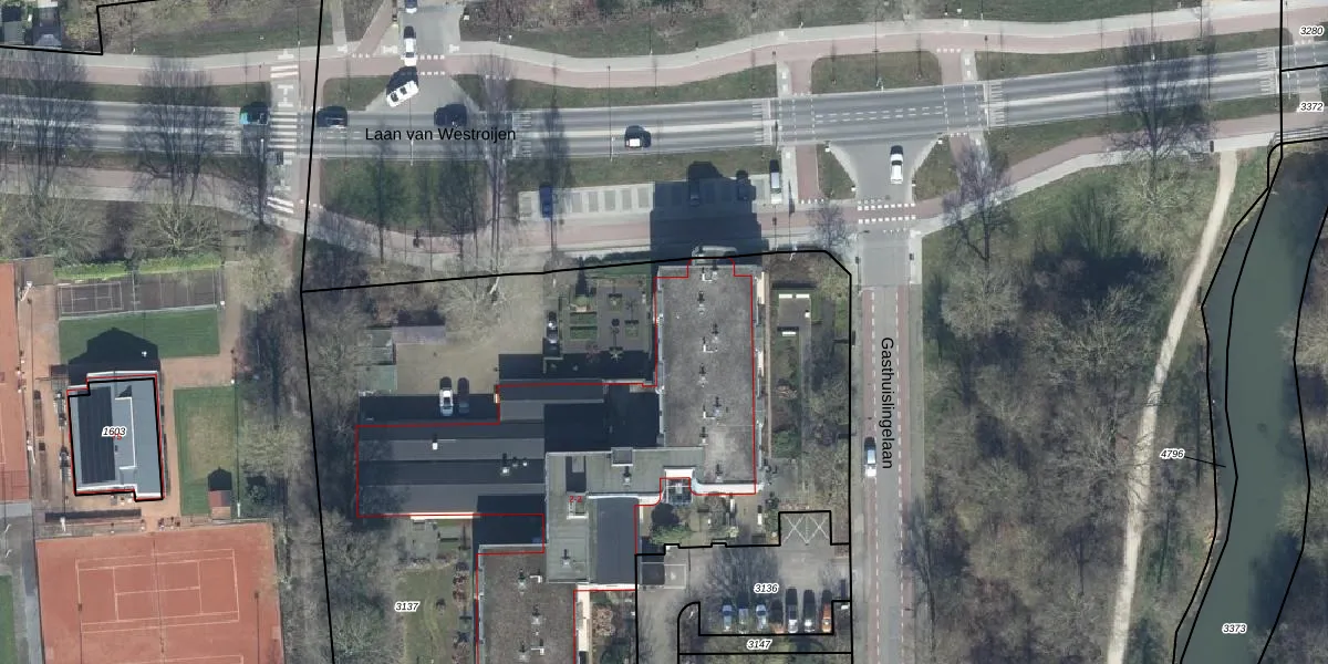 Het perceel waarop Gasthuislingelaan 2-119 staat heeft een oppervlakte van 5111 m². Dit is een zeer groot perceel. De perceeloppervlakte wordt geregistreerd door het Kadaster. Gedetailleerde informatie over de maten van dit perceel kunt u vinden in het rapport Kadastrale kaart met maatvoering van Gasthuislingelaan 2-119.