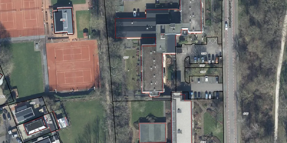 Het perceel waarop Gasthuislingelaan 2-208 staat heeft een oppervlakte van 5111 m². Dit is een zeer groot perceel. De perceeloppervlakte wordt geregistreerd door het Kadaster. Gedetailleerde informatie over de maten van dit perceel kunt u vinden in het rapport Kadastrale kaart met maatvoering van Gasthuislingelaan 2-208.