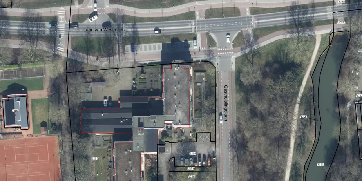Het perceel waarop Gasthuislingelaan 2-215 staat heeft een oppervlakte van 5111 m². Dit is een zeer groot perceel. De perceeloppervlakte wordt geregistreerd door het Kadaster. Gedetailleerde informatie over de maten van dit perceel kunt u vinden in het rapport Kadastrale kaart met maatvoering van Gasthuislingelaan 2-215.