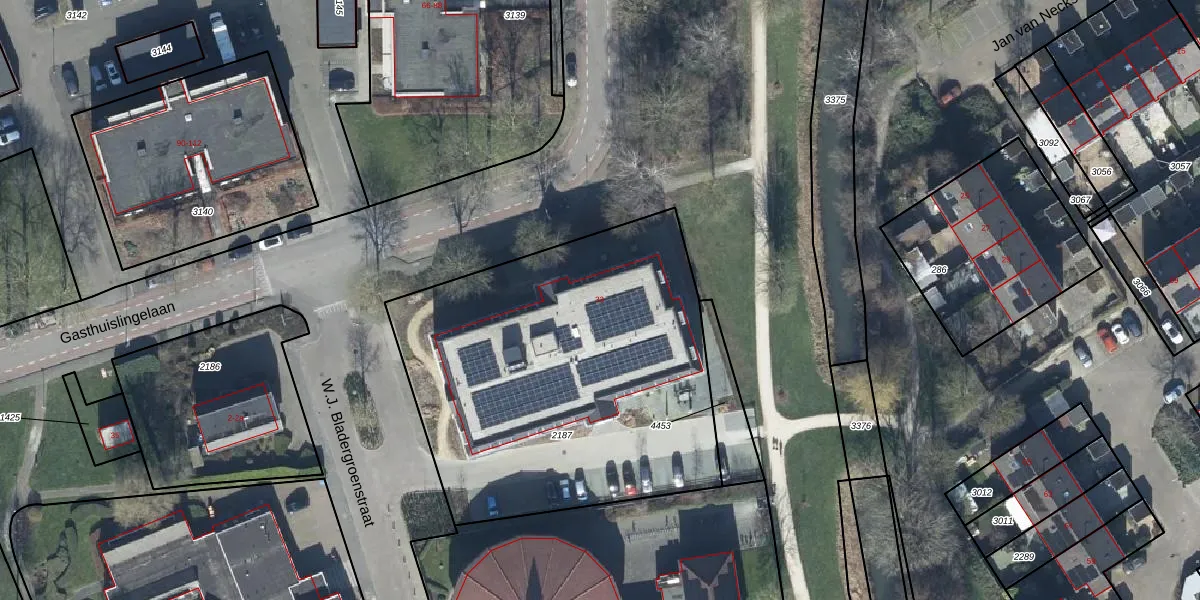 Het perceel waarop Gasthuislingelaan 33 staat heeft een oppervlakte van 2090 m². Dit is een zeer groot perceel. De perceeloppervlakte wordt geregistreerd door het Kadaster. Gedetailleerde informatie over de maten van dit perceel kunt u vinden in het rapport Kadastrale kaart met maatvoering van Gasthuislingelaan 33.