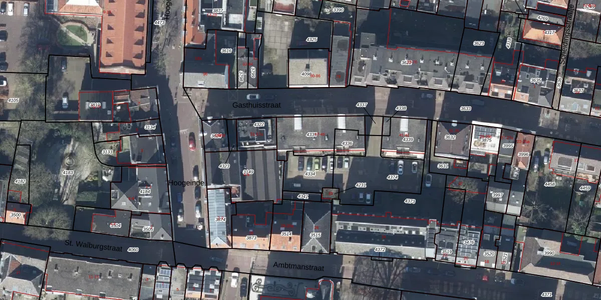 Gasthuisstraat 49-21 is gelegen op kadastraal perceel TIE00E4335. Deze kadastrale aanduiding is uniek en wordt gebruikt door het Kadaster om eigendomsrechten en andere zakelijke rechten vast te leggen. Het perceel maakt onderdeel uit van de kadastrale gemeente Tiel.
