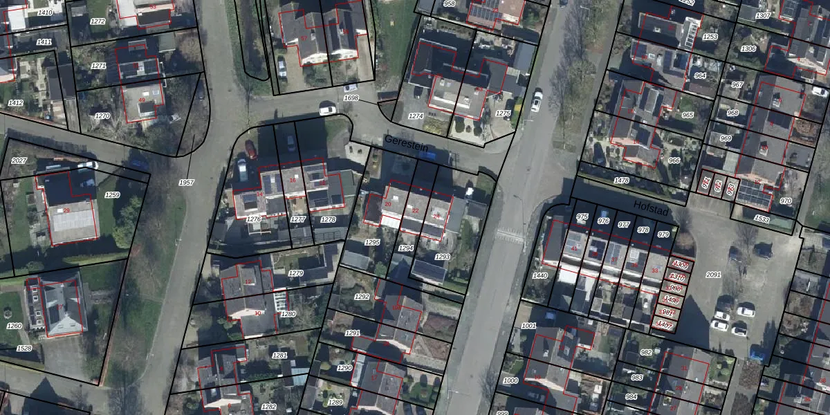 Het perceel waarop Gerestein 22 staat heeft een oppervlakte van 185 m². Dit is een middelgroot perceel. De perceeloppervlakte wordt geregistreerd door het Kadaster. Gedetailleerde informatie over de maten van dit perceel kunt u vinden in het rapport Kadastrale kaart met maatvoering van Gerestein 22.