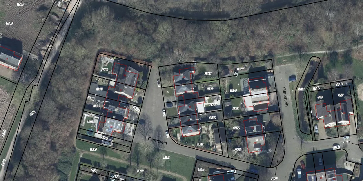 Gerestein 43 is gelegen op kadastraal perceel TIE00G1268. Deze kadastrale aanduiding is uniek en wordt gebruikt door het Kadaster om eigendomsrechten en andere zakelijke rechten vast te leggen. Het perceel maakt onderdeel uit van de kadastrale gemeente Tiel.