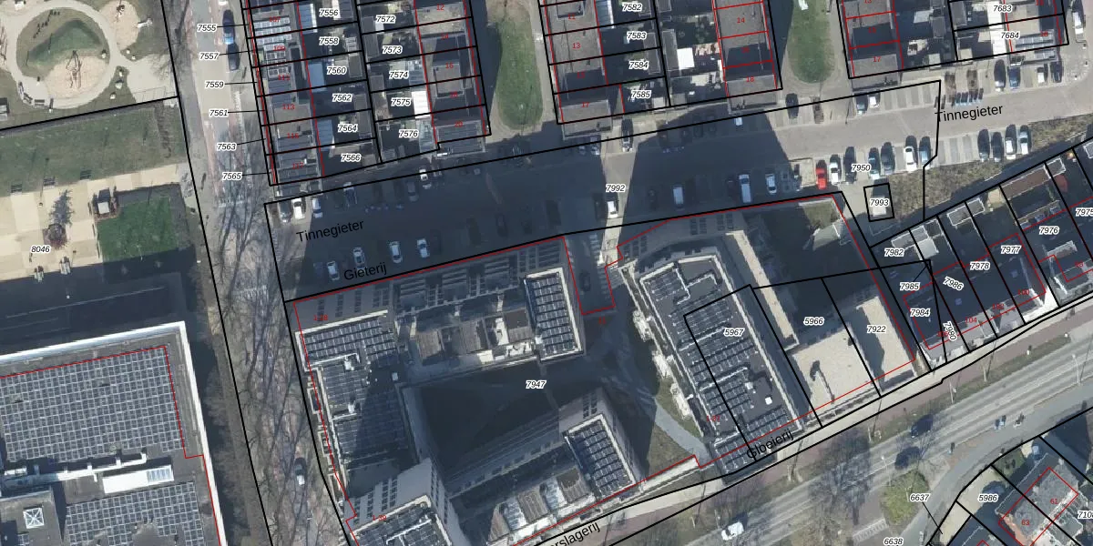 Gieterij 14 is gelegen op kadastraal perceel TIE00D7947. Deze kadastrale aanduiding is uniek en wordt gebruikt door het Kadaster om eigendomsrechten en andere zakelijke rechten vast te leggen. Het perceel maakt onderdeel uit van de kadastrale gemeente Tiel.