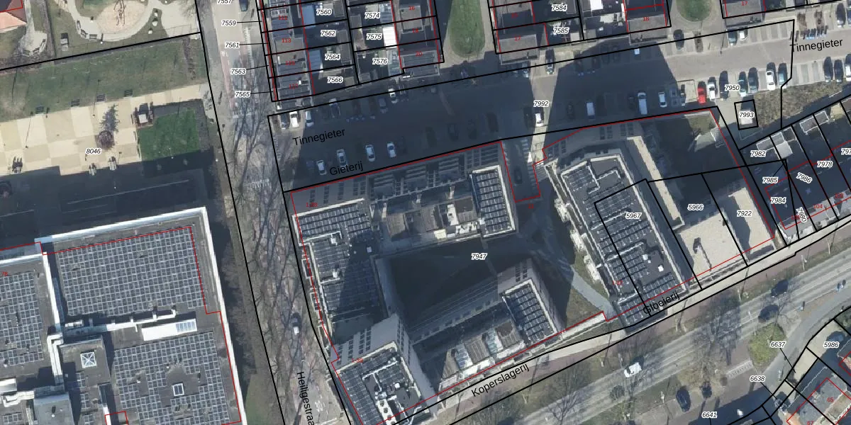 Het adres ligt op het perceel TIE00-D-7947, dat zich in de kadastrale gemeente Tiel bevindt. De oppervlakte van het perceel is 4487 m². Dat is groter dan gemiddeld in Tiel, waar de gemiddelde perceeloppervlakte op 1546,87 m² ligt. Het kleinste perceel in de kadastrale gemeente is 0 m² groot. De grootste perceeloppervlakte is 26,3 ha. Er zijn 88 adressen aanwezig op het perceel. In de Basisregistratie Kadaster (BRK) werden de grenzen van het perceel geregistreerd op 06-05-2024.